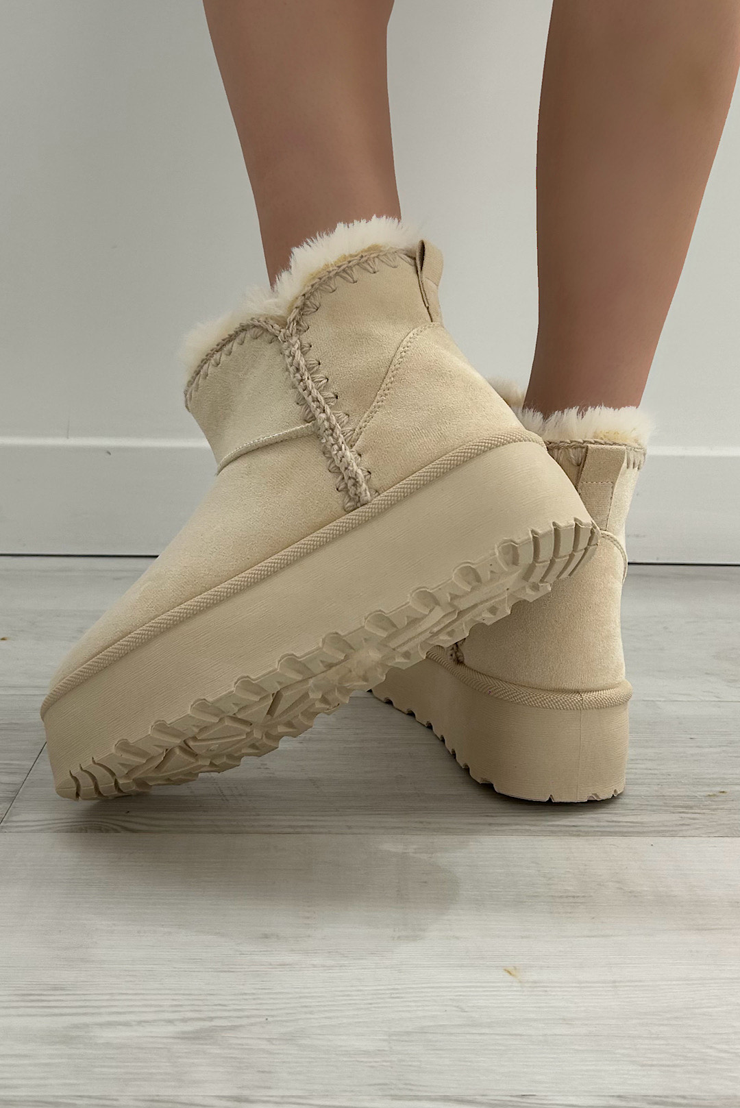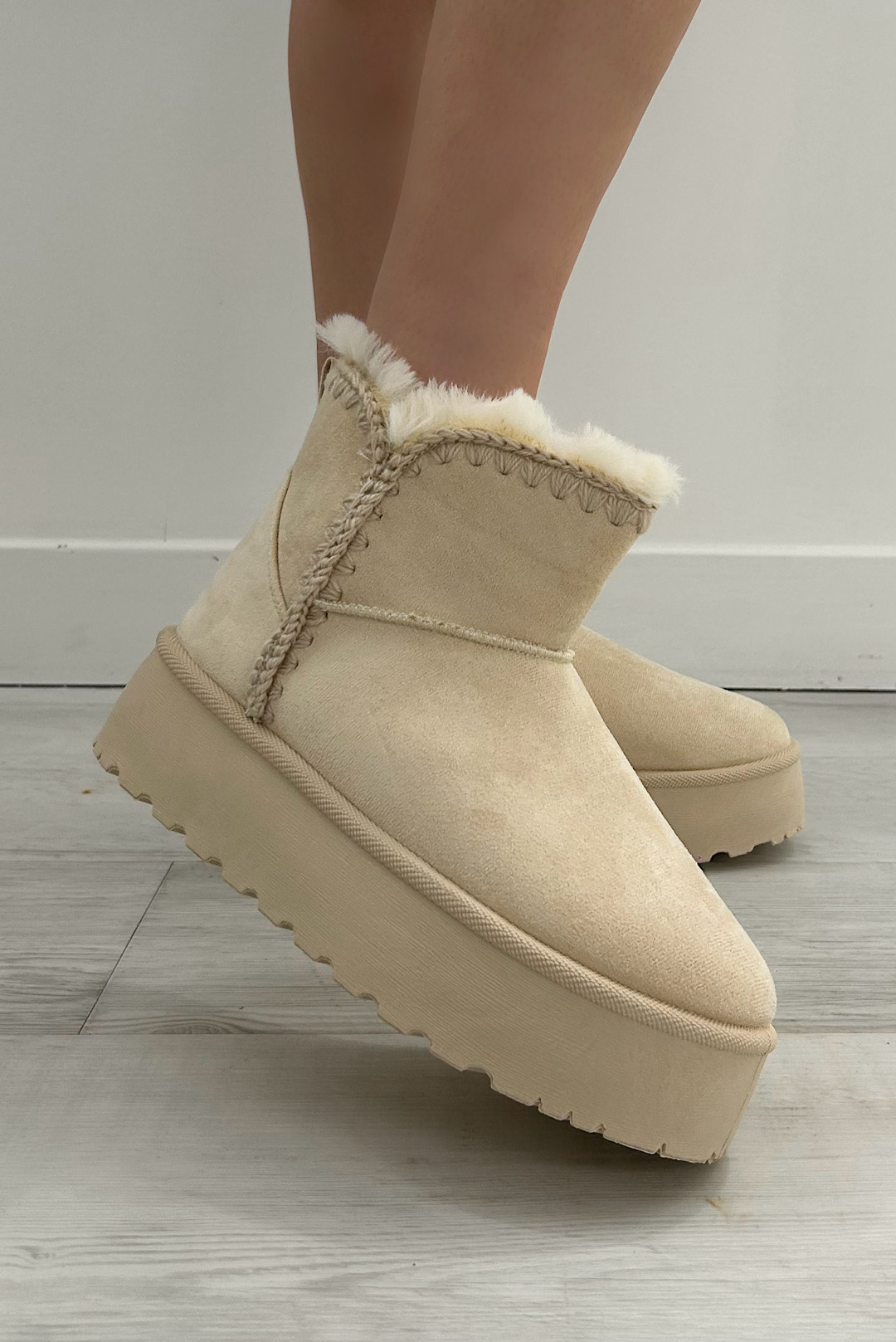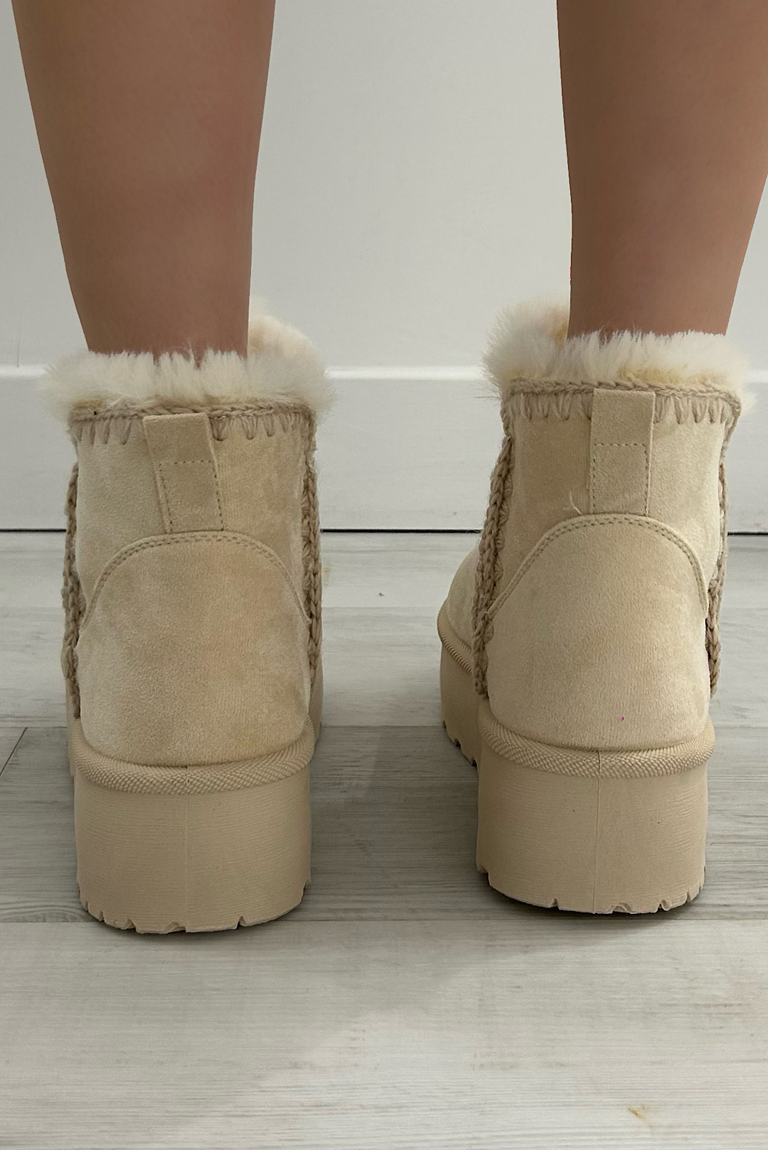 Μπότες με εσωτερική faux γούνα σε εκρού και καφέ χρώμα