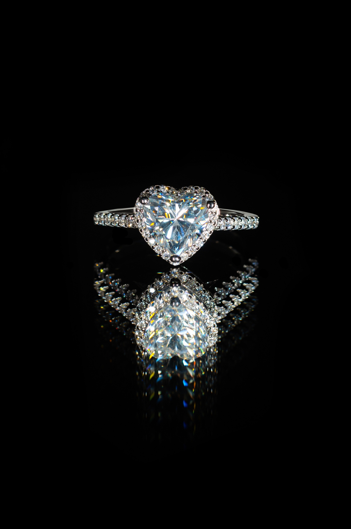 Heart άχρωμος μοϊσανίτης διακοσμημένος σε pave σχέδιο με μικρότερους