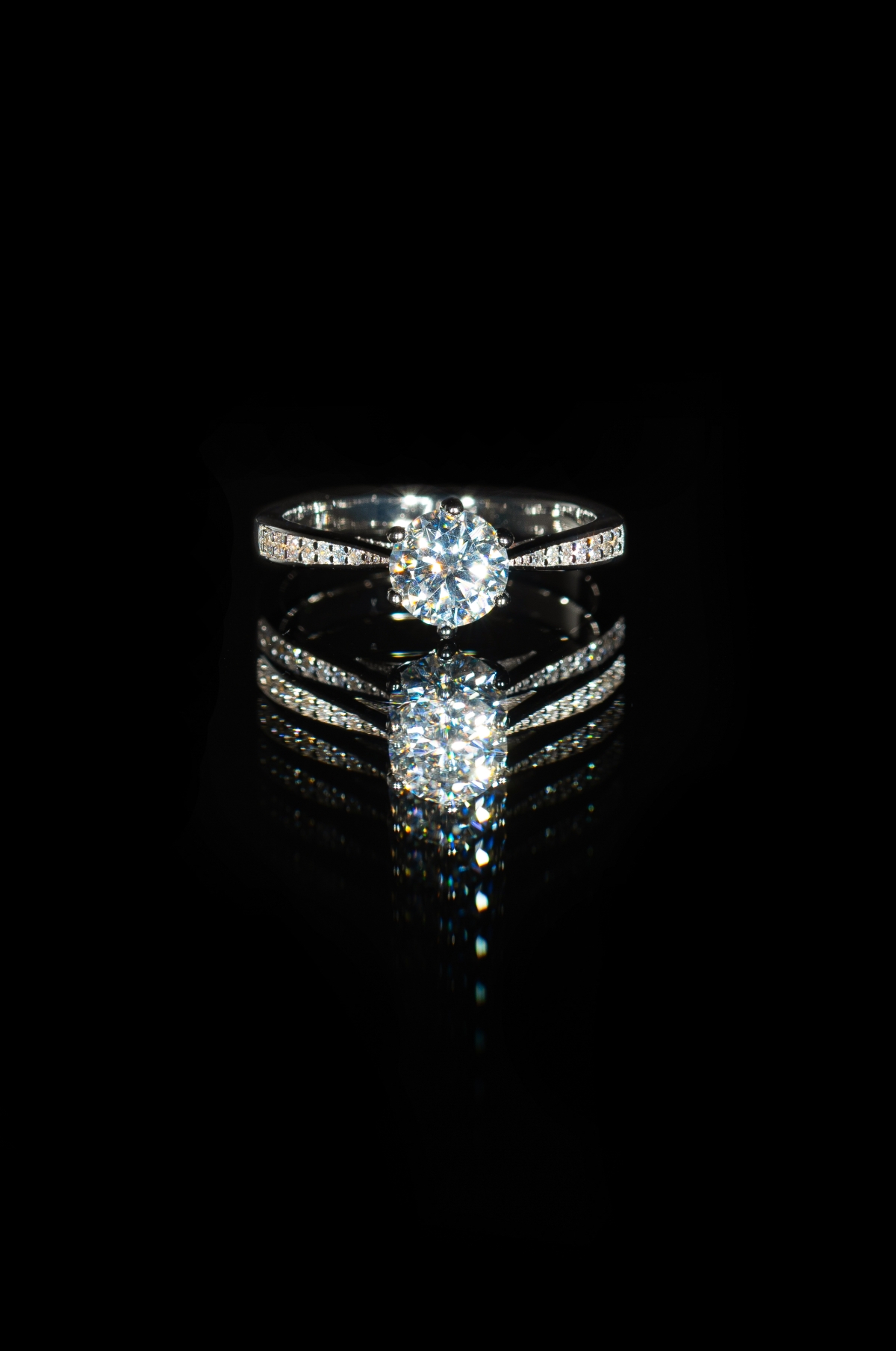 Round brilliant άχρωμος μοϊσανίτης  με μικρότερους μοισανίτες στα πλαινά